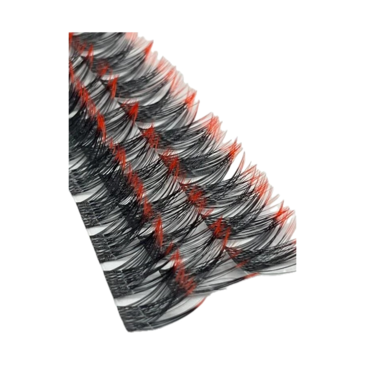 ترکیب رنگی آمبره: این مژهها دارای طیفی زیبا از رنگ قرمز هستند که به صورت طبیعی و هنرمندانه محو میشود (آمبره)، و جلوهای دینامیک، گرم و سهبعدی به مژهها میبخشد.